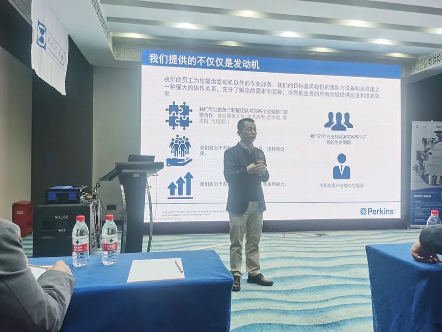會(huì)上,Perkins北亞區(qū)市場(chǎng)部經(jīng)理傅岸然先生向與會(huì)的廠商介紹了Perkins品牌的發(fā)展歷程,2022年是珀金斯發(fā)動(dòng)機(jī)有限公司成立90周年,在公司成立期間,超過(guò)2200萬(wàn)臺(tái)柴油發(fā)動(dòng)機(jī)從我們的生產(chǎn)線下線,在180多個(gè)國(guó)家建立了超過(guò)3500個(gè)服務(wù)網(wǎng)點(diǎn)。Perkins產(chǎn)品覆蓋了從5-2500KVA的功率段,滿足客戶的多種需求,為客戶提供世界級(jí)的定制化解決方案。