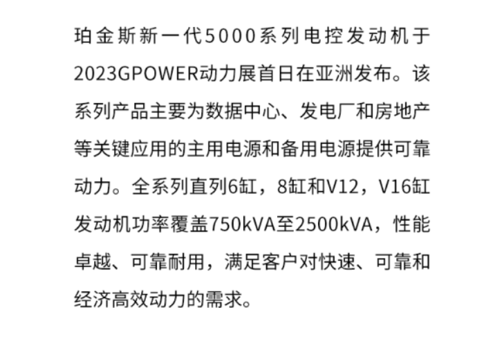 珀金斯新一代5000系列電控發(fā)動(dòng)機(jī)亞洲首發(fā)